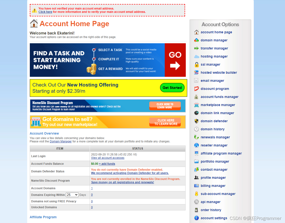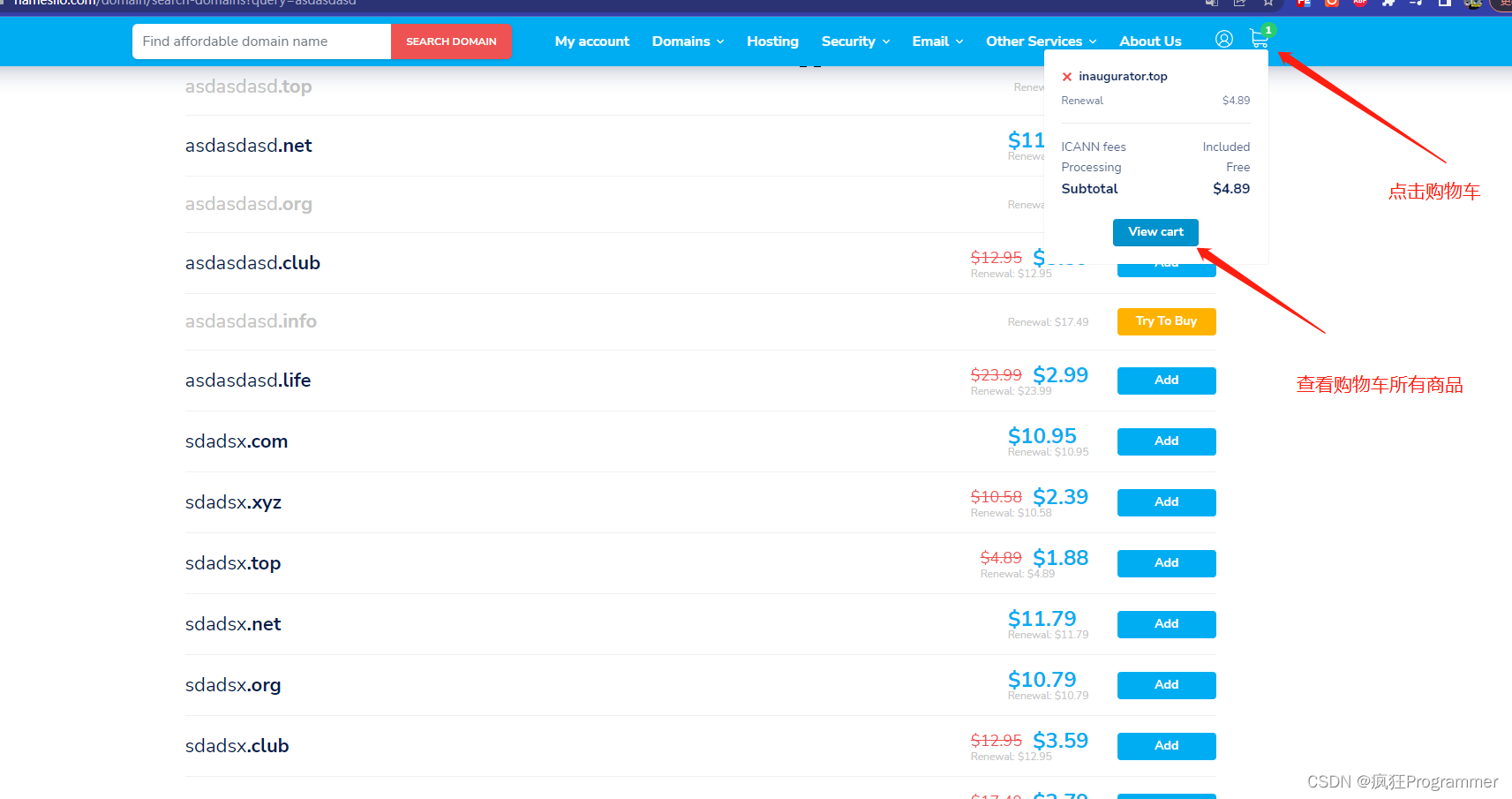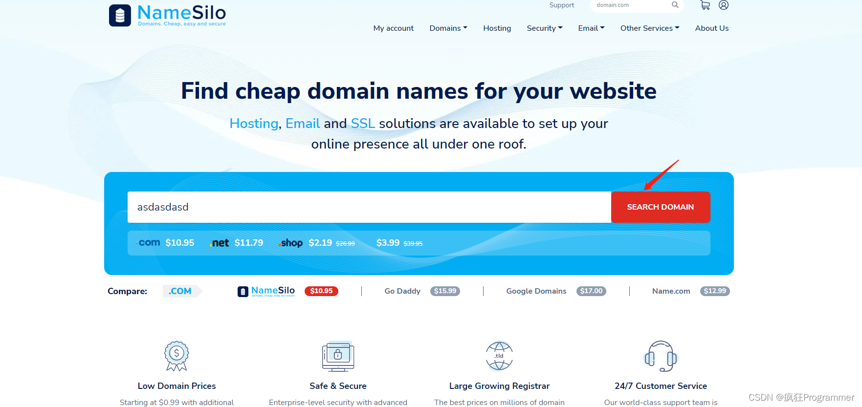 网站连接:https://www.namesilo.com/