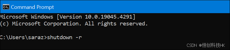 要重新启动 Windows 服务器,请访问命令提示符并输入: