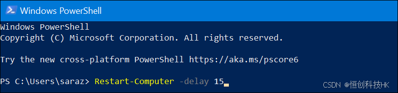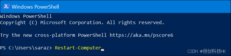 要重新启动服务器,请使用不带任何选项的命令。访问 PowerShell 并输入以下内容: