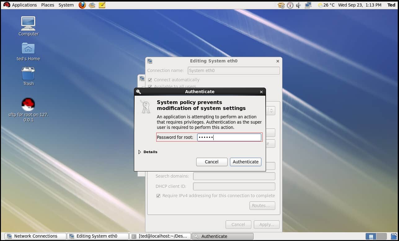 - 点击Apply要求输入root密码才能完成设置(如图7)
